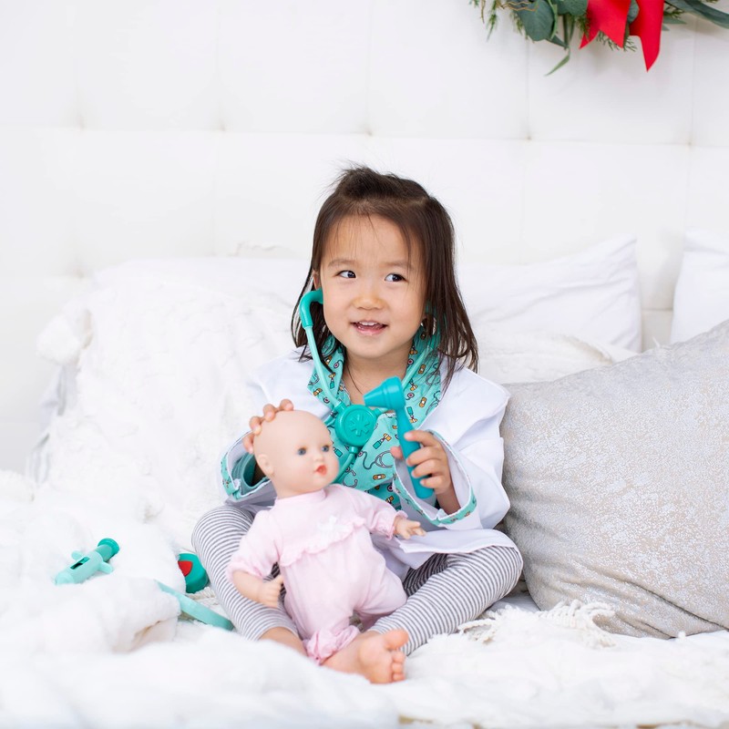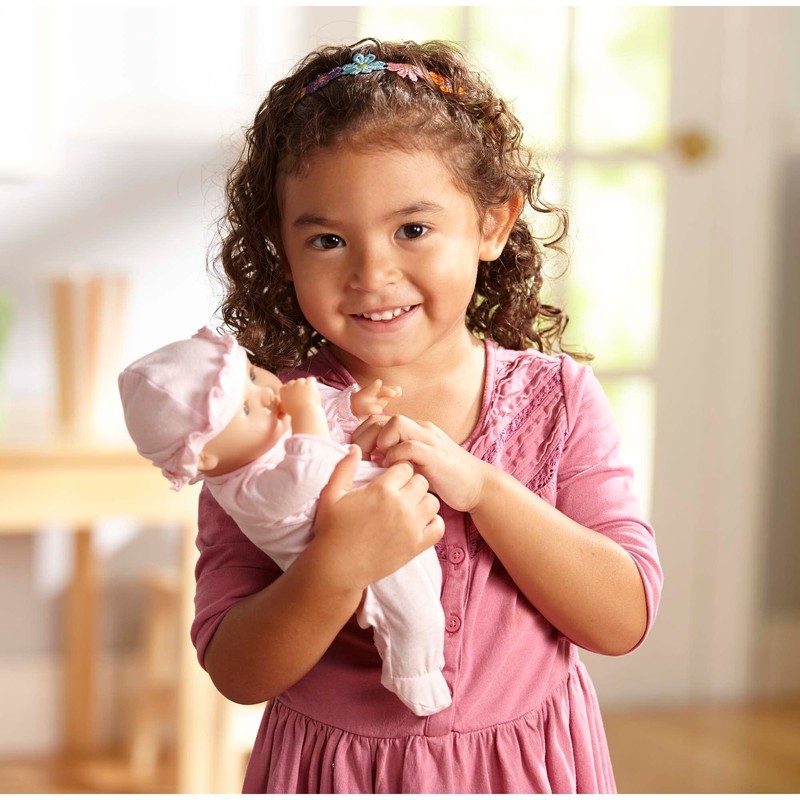 Jenna is the ideal, sweet smelling, first-born baby doll. Even the youngest mommy will love her sweet face and soft, cuddly body (and real moms will love her wipe-clean arms and legs!). She is "pretty in pink" from head to toe, in a removable, smocked, onesie and matching cap. Her eyes open and close, and she can suck her thumb or her pacifier (included).