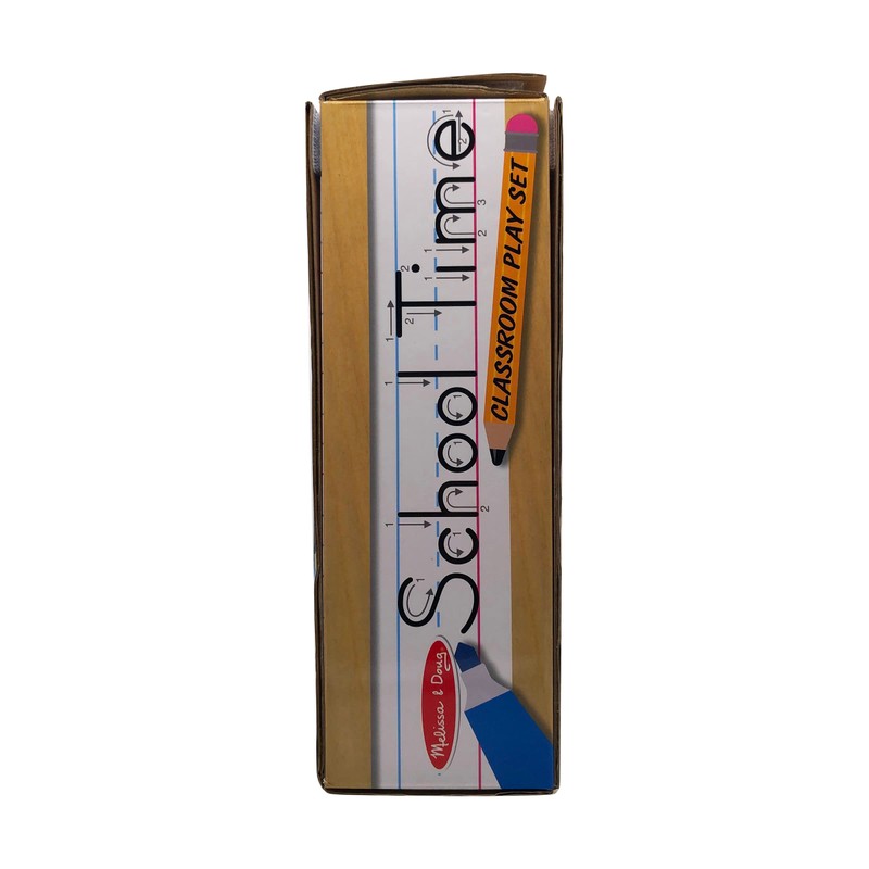 - REALISTIC CLASSROOM PLAY SET: The Melissa & Doug School Time! Classroom Play Set includes everything kids need to enjoy hours of classroom playtime. The set features drop-down teacher and student desks.