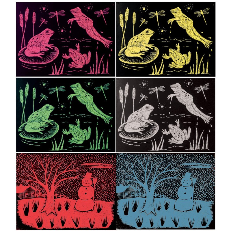 - Simply scratch black coated sheets with a wood stick to reveal the bright, solid colors underneath!