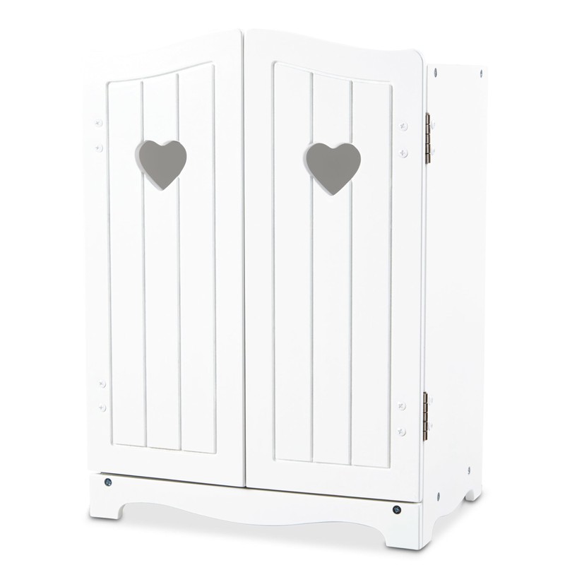 Melissa & Doug Mine to Love Wooden Play Armoire Closet for Dolls, Stuffed Animals - White (17.3”H x 12.4”W x 8.5”D Assembled) Wooden Pretend Play Closet, Doll Wardrobe