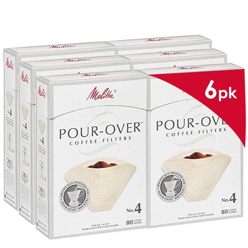 Melitta #4 Pour-Over Cone Coffee Filters, Beige, 80 Count (Pack of 6) 480 Total Filters Count