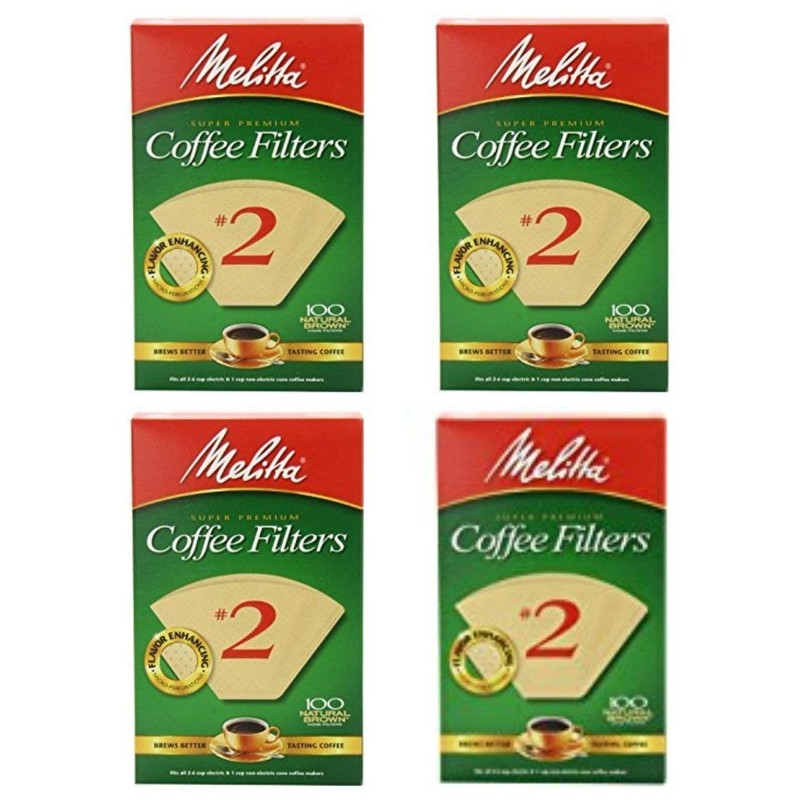 Melitta Cone Coffee Filter #2 100 Count- Natural Brown (Pack Of 4)