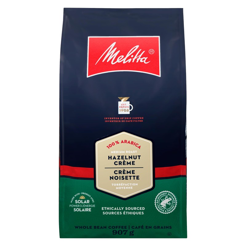 Melitta Hazelnut Cream Whole Bean Coffee, Medium Roast, Rainforest Alliance Certified, Premium Arabica Beans, 907g