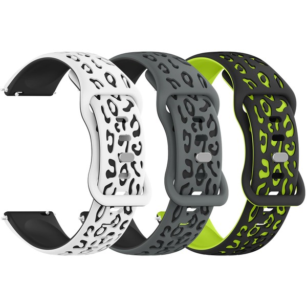 Meliya 20mm Watch Bands Quick Release Replacement Wristband, Leopard Engraved Soft Silicone Sport Replacement Straps for Women Men (White/Black+Grey/Black+Black/Green, 20mm)