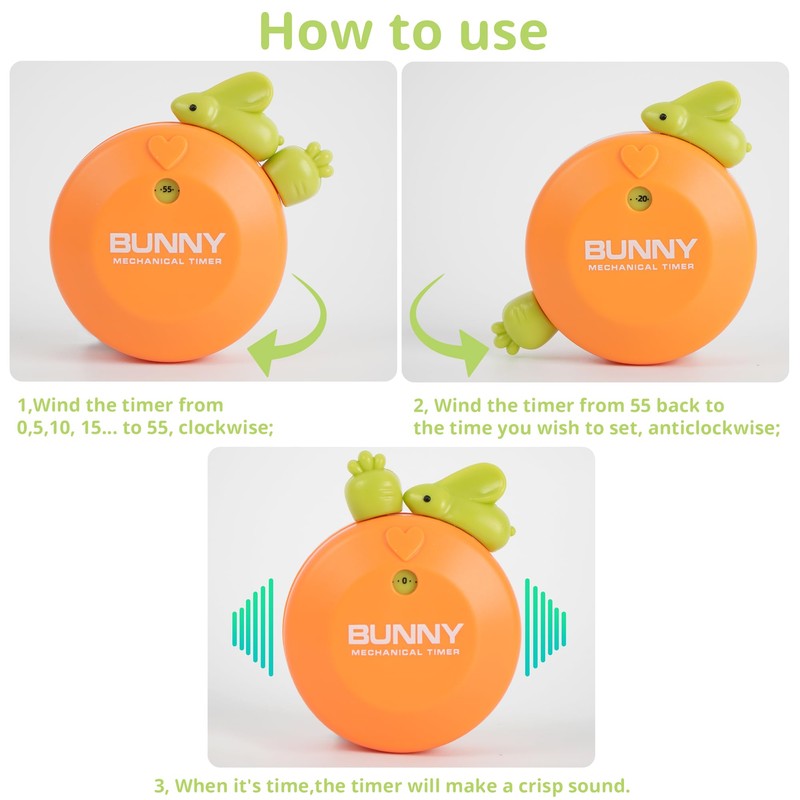 Meliyya Mechanical Kitchen Alarm Clock Cartoon Rabbit Carrot Kitchen Timer Cute Timer Egg Timer 60 Minute Countdown Timer with Magnet for Cooking Household Learning Shower