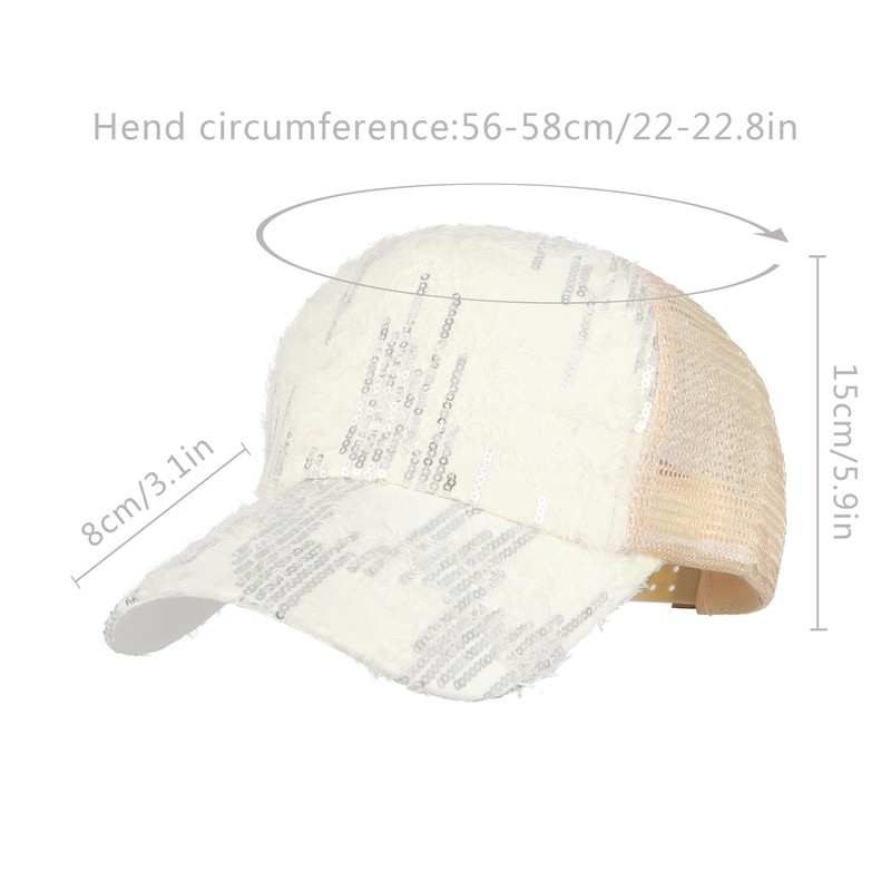 - Material: a baseball cap exclusively designed by us with 70% mesh material. This cap is decorated with beautiful sequins on it. The workmanship is exquisite and fine, and the material is breathable and high quality.