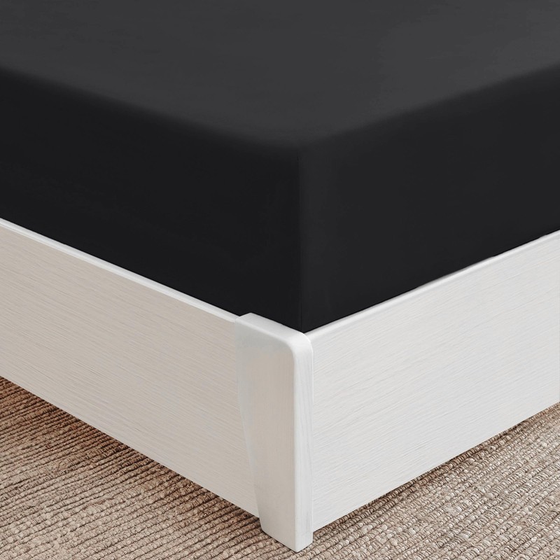 Mellanni Fitted Sheet 160 x 200 cm Box Spring Bed - Microfibre Fitted Sheet - Flat Sheet up to 40 cm Mattress Height - Soft, Wrinkle-Free, Elastic All Around - (160 x 200 cm, Black)