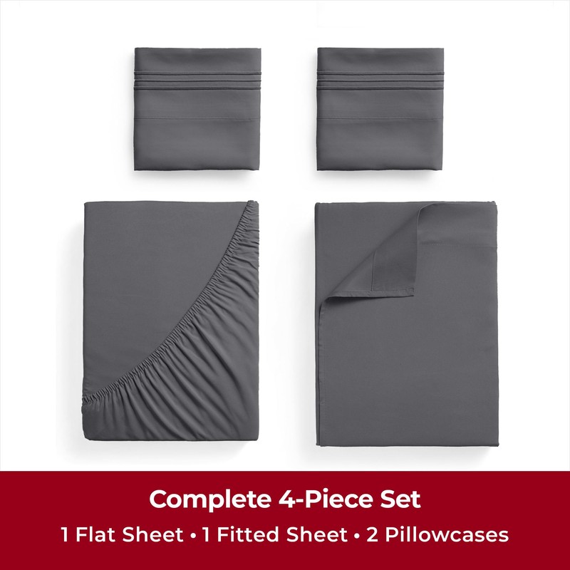 Mellanni Mellanni King Sheet Set - 6-Piece Iconic Collection Bedding, (Including 4 Pillowcases), 16-Inch Deep Pocket, Easy Care, Extra Soft, Cooling Sheets, Brushed Microfiber - Gray