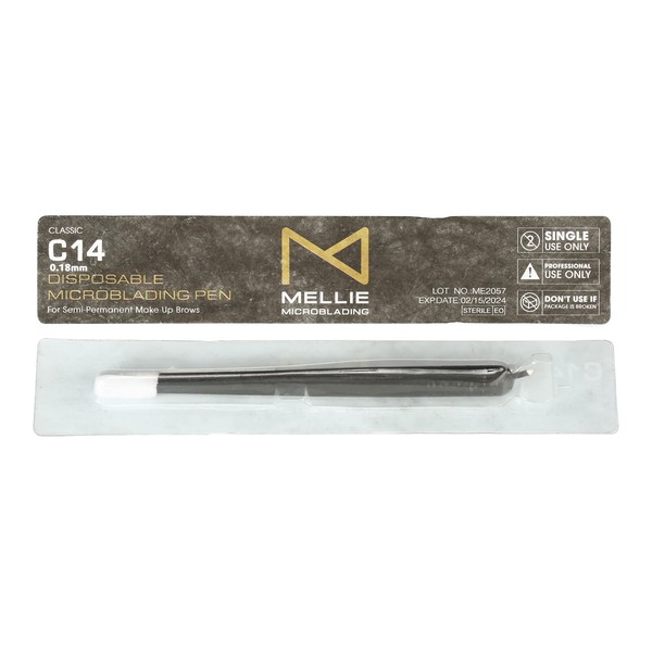 Mellie Microblading Eccentric Disposable Microblading Pen C14 Blade .18mm with Pigment Sponge PACK OF 10 Permanent Make Up Supplies