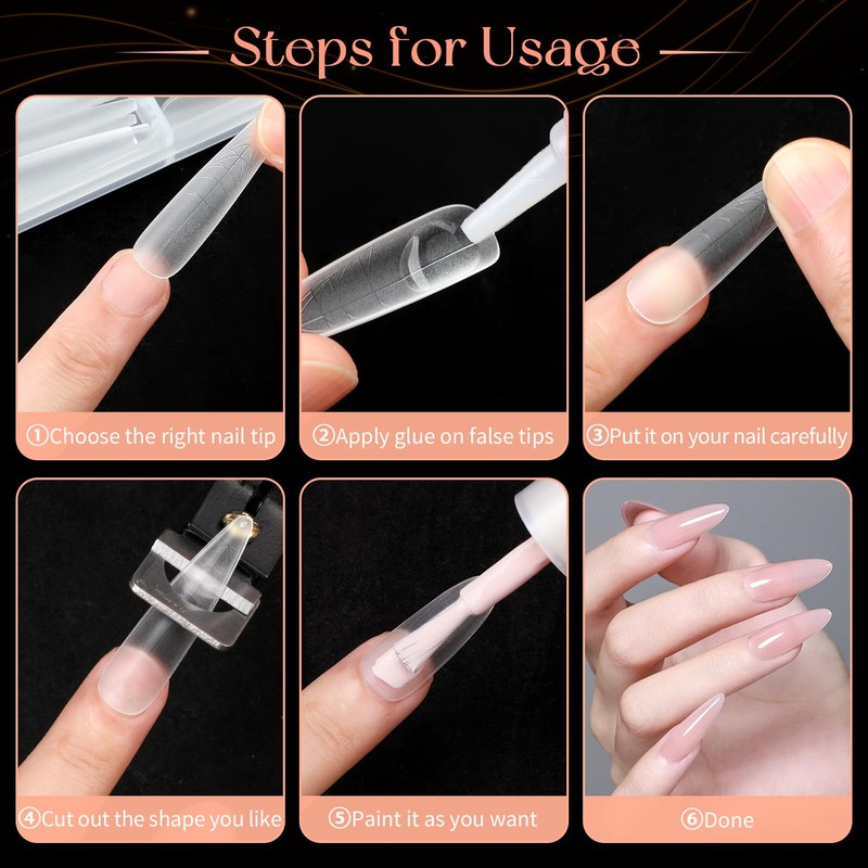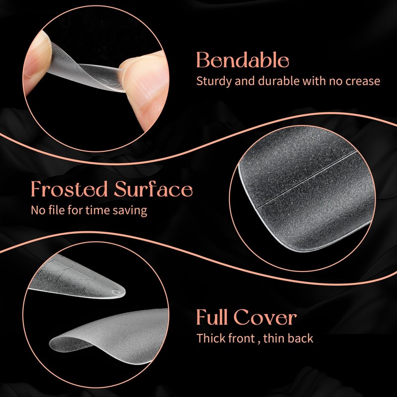 - Matte Oberfläche - Die Oberfläche der Gelspitzen ist matt, was bedeutet, dass unsere vollständigen Nagelspitzen nicht separat poliert werden müssen, die Zeit sparen, und die matte Oberfläche hat eine größere Reibung und eine bessere Haftung als traditionelle Maniküren, was Ihre Nägel länger hält!