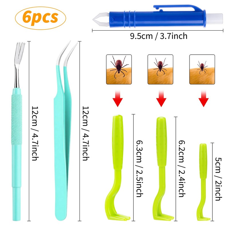 - Practical set - Includes 3 tick hooks in different sizes, 1 tick pliers, 1 tick shovel and 1 pointed tweezers, you can easily remove different types and sizes of ticks and lice.