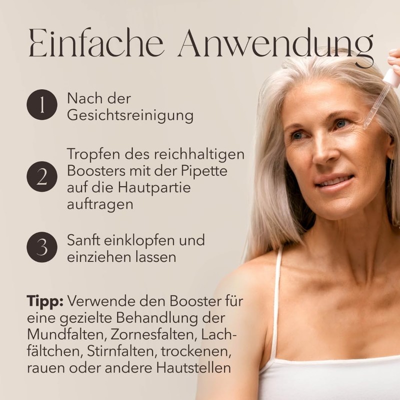 - Very good skin compatibility, successfully dermatologically tested on sensitive skin. Especially gentle formulation, therefore very suitable as an eye cream. Gently pat moisturising serum into cleansed facial skin in the morning and evening.