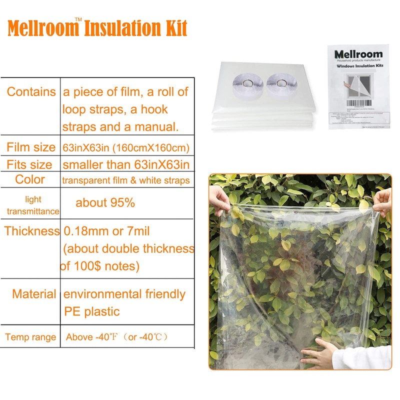 Mellroom Mellroom Adjutsable Window Insulation Kit 63inX63in(160X160cm),Clear180? Thickness,Easy to Open for Ventilation Reusable Plastic Window wrap