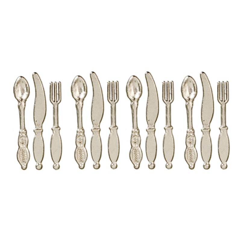 Melody Jane Dolls House Silver Cutlery Set Miniature Metal Kitchen Dining 1:12 Accessory