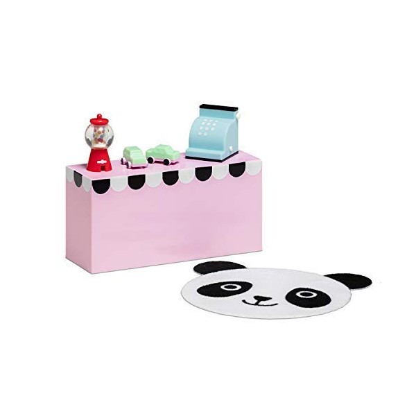 • For your successful new career, you need a checkout counter, a till, a rug so that your customers feel comfortable, toy cars for children to play with- and not forgetting a chewing gum machine. This Lundby set can make all your dreams come true.
