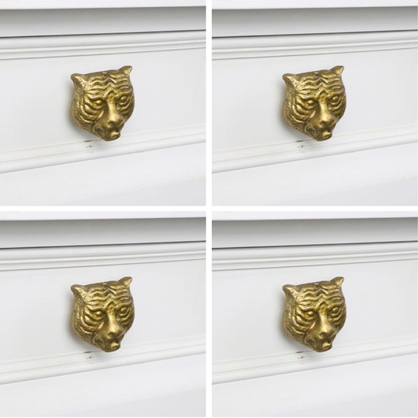 - This Gold Tiger Head Drawer Knob is the perfect way to update drawers and doors. Striking tiger head shaped drawer knob in an antiqued gold finish.