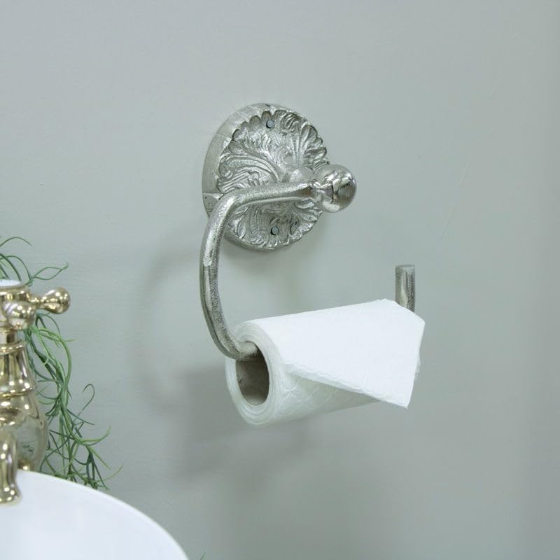 - Having a vintage ornate style, the toilet roll holder will easily allow you to keep your bathroom tidy and incredibly stylish. The silver colour adds a vibrant look. Why not add some silver accessories to your bathroom decor with this on trend toilet roll holder.