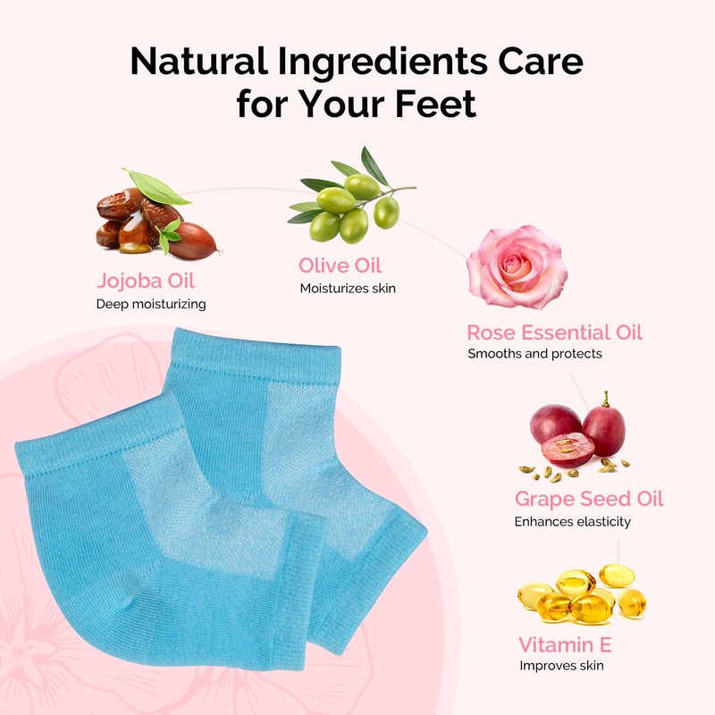 - High-quality gel socks: Made with premium SEBS gel and skin-friendly cotton lining, these socks effectively reduce friction between shoes and feet during the day,remain breathable and sweat-free, and deeply moisturize cracked heels at night,allowing for freedom of movement and sleep.The simple three-step process of soaking,applying,and wearing provides all-day relief from cracked heels.If used with lotion, avoid walking to prevent slipping