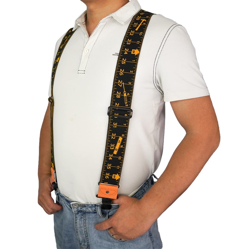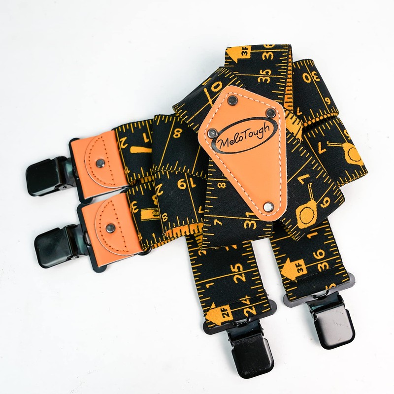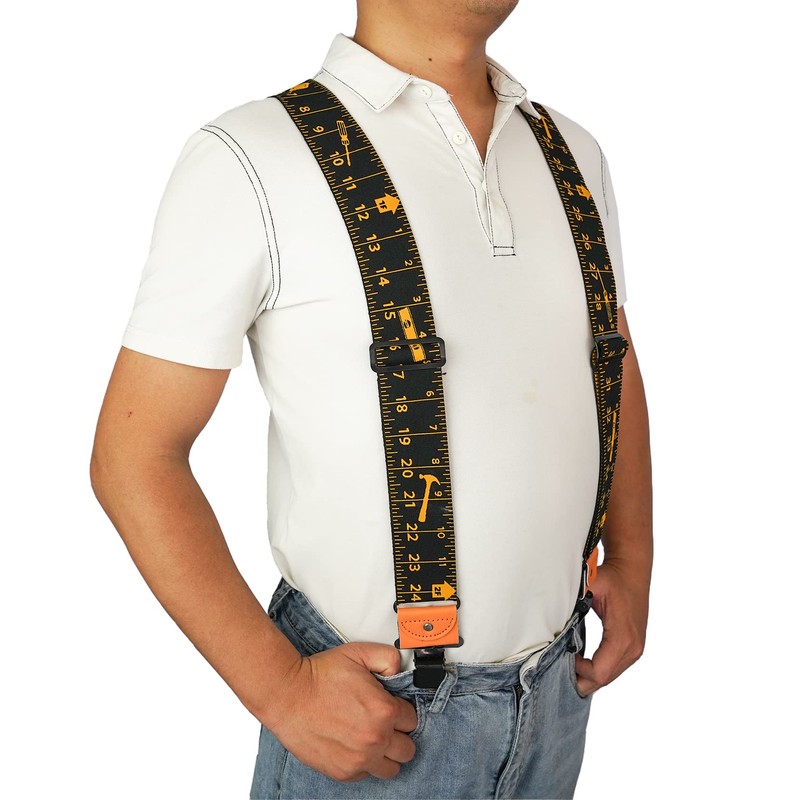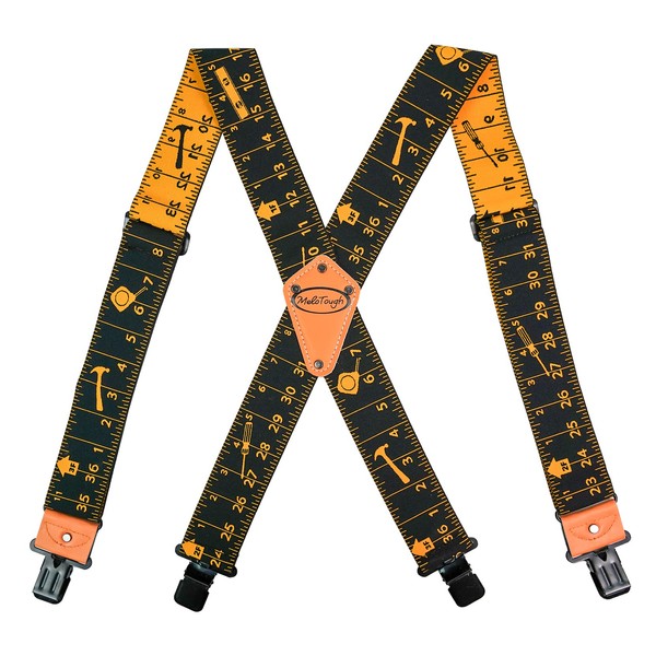 MELOTOUGH Men suspender with 2 inch elastic fully adjustable X back Industrial Strength Suspender (Black Rule)
