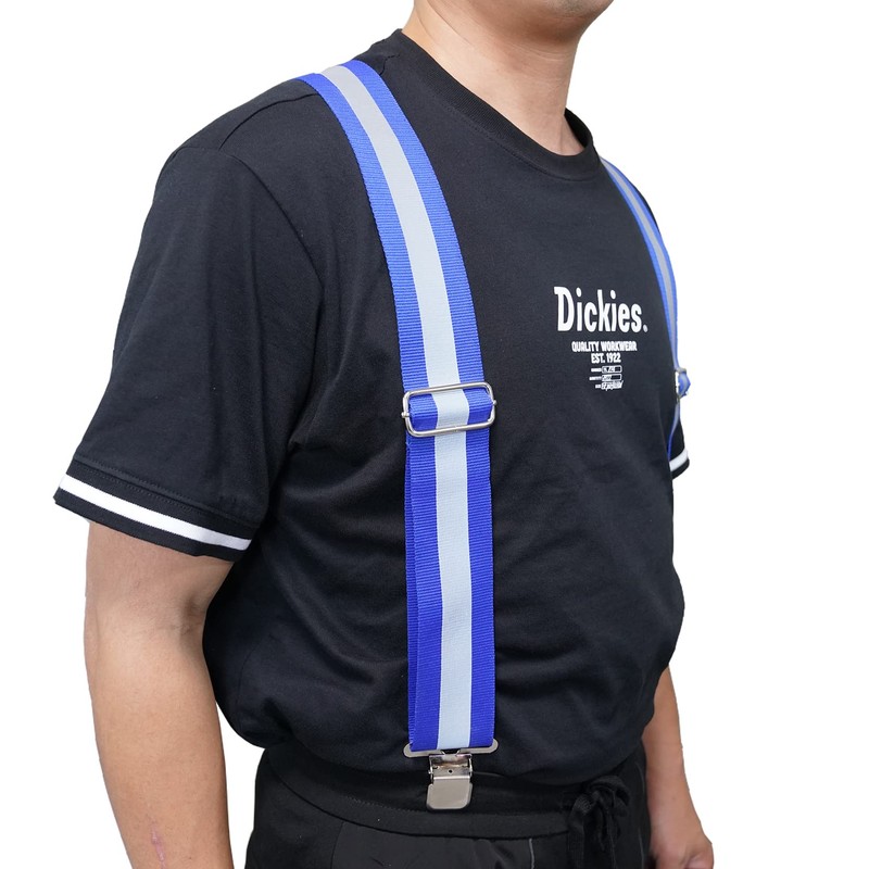 MELOTOUGH Reflective Safety Suspenders|Work Suspenders with Hi Vis Reflective Strip Hold Up Tool Belt Suspenders(X Back Blue Reflective)