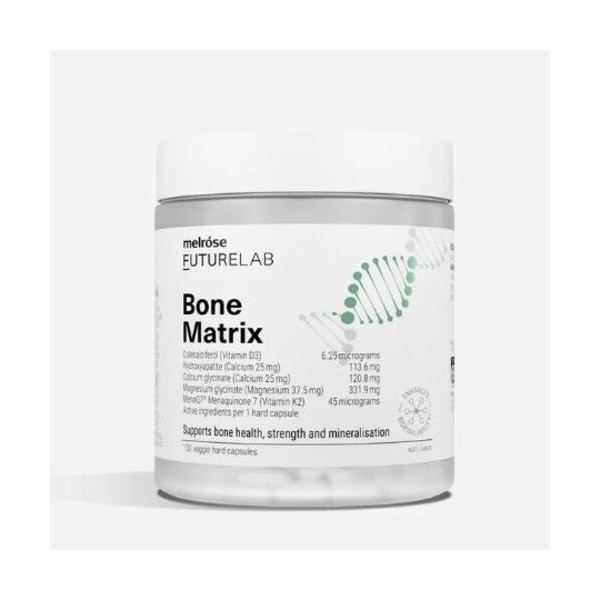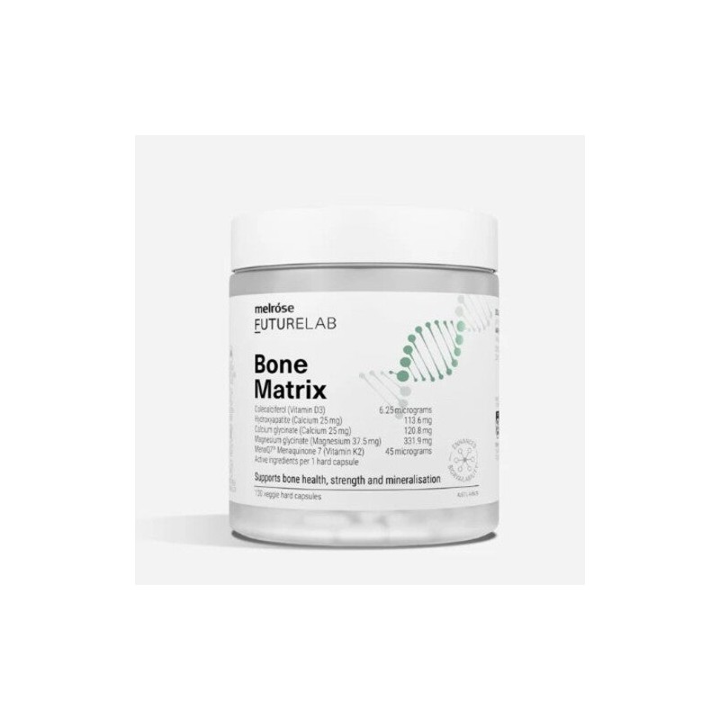 Melrose FutureLab Bone Matrix combines calcium, magnesium, vitamin D3 and MenaQ7® K2 to support bone strength and mineralisation. Vitamin D3 helps calcium absorption when dietary intake or sun exposure is inadequate. This bioavailable daily formula helps maintain bone health, which is an important part of overall wellbeing as you age.
