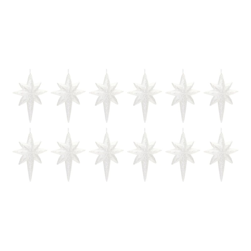 Add a chic touch to your Christmas Tree with this beautiful set of Clear Acrylic Star Ornaments. Featuring 12 pieces, this set's chic clear finish, Northern star design, and glitter accents are the perfect combination to create a memorable display. The quality acrylic composition with string hanger is sure to endure for seasons to come. Whether you're adding a touch of cheer to your home or gifting to a loved one, these ornaments will definitely bring smiles to your home.