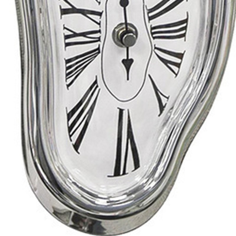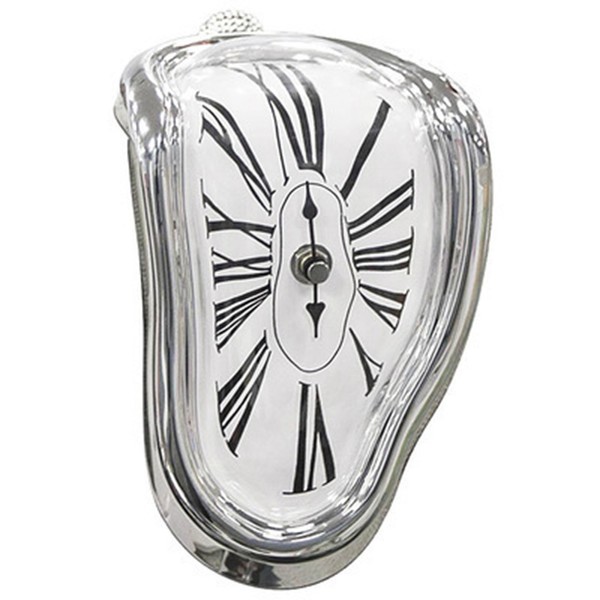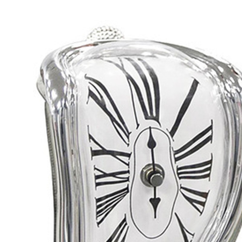 Melting Clock Plastic Retro Decorative Electroplated Metal Paint Desk Table Clock for Office Silver