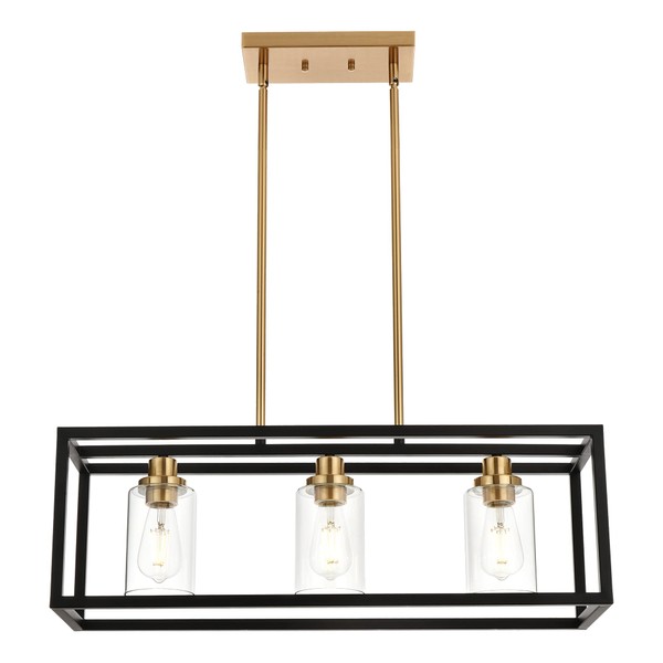 - Stunning Design - This 3-light chandelier lighting combine metal openwork rectangular frame black brass finish with clear glass shade outlines the beauty of geometry. The entire fixture is made up of clean linear square tube will bring simple but stylish design to your home