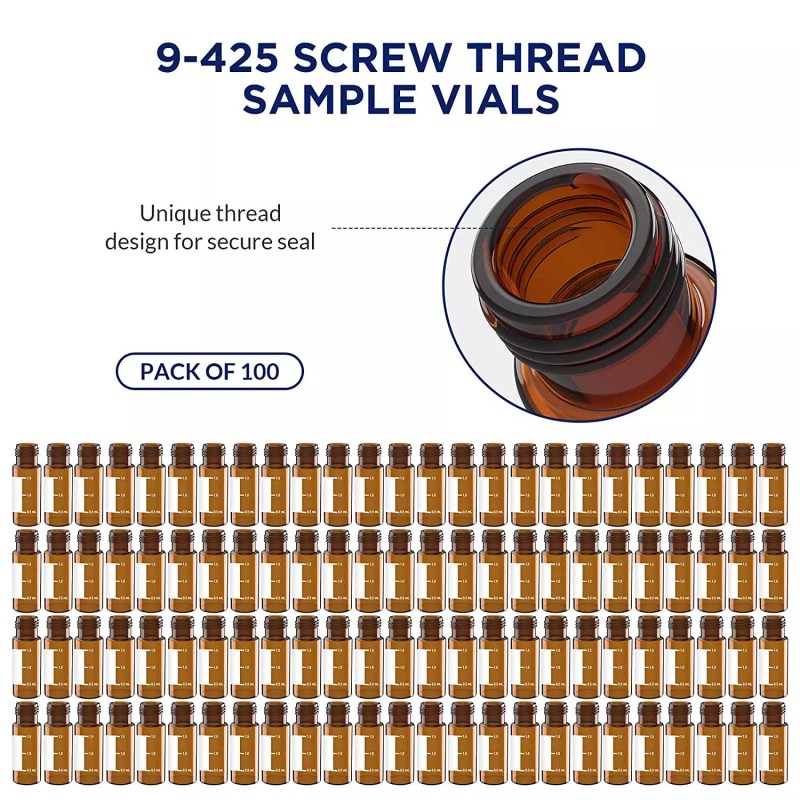 3)9-425 Screw Vials: 2ml sample Vials with unique thread design ensures consistent seal and can be reused, not volatile, easy to use, Amber vial with large writing patch for sample identification.