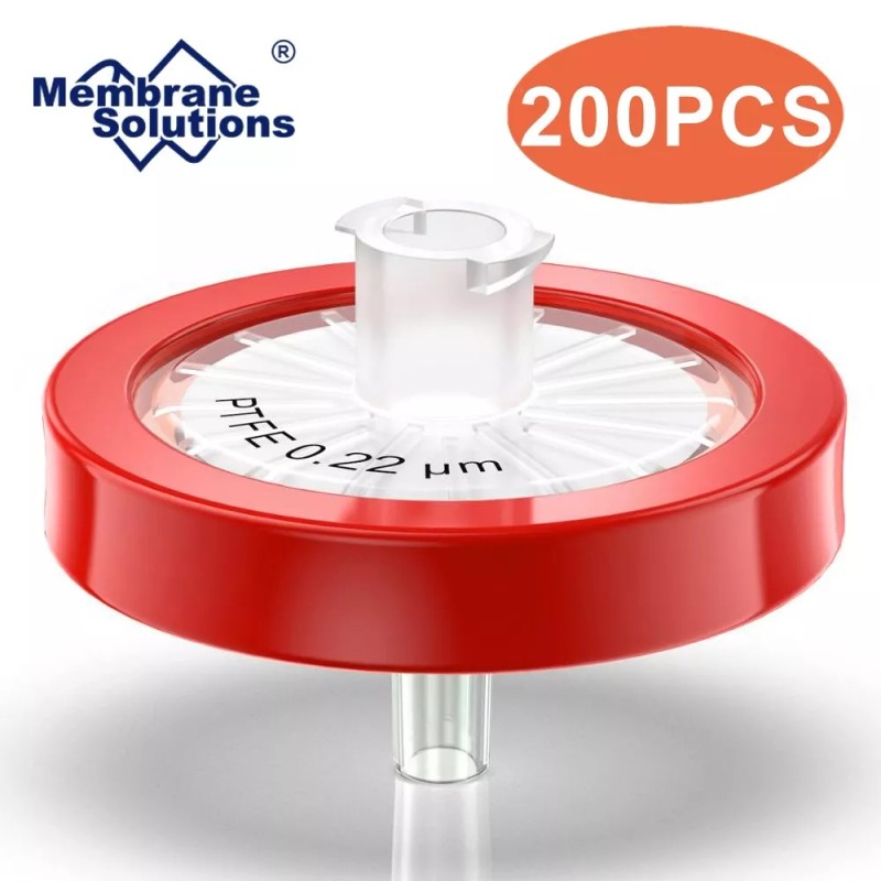 Membrane Solutions 200pcs Syringe Filter PTFE Hydrophobic Membrane 13mm 0.22um Non Sterile Red HPLC