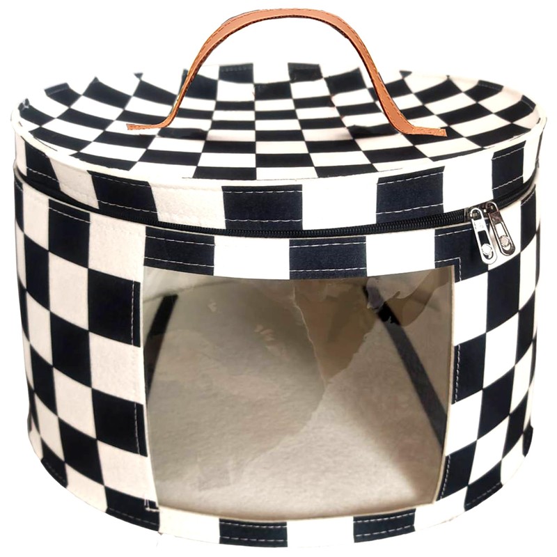 - Save Time Finding Hats--As the saying goes,time is money! Every behavior and action takes up time every day! Same goes for finding hats! Our cylindrical hat box has a window on the side so you can see where the hat you're looking for is outside the hat storage! The two-way zipper allows you to easily open the hat container box when you need it