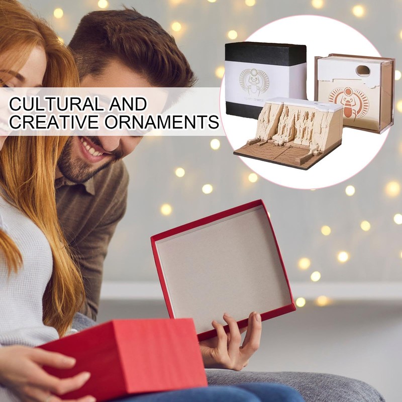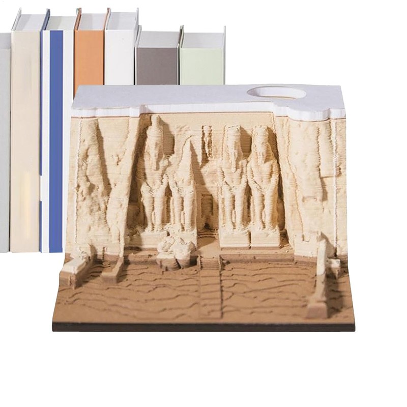 Memo Pad, Temple Designed Desktop Note Record, Paper Carving Art Craft Sticky Memo Pad with Pen Holder Cover
