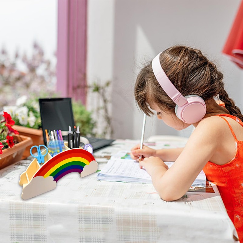 • ✅PERFECT GIFT Our wooden rainbow pen holder is perfect as a gift for friends near you, so that their stationery has a home and the desk is no longer cluttered.