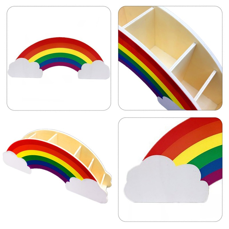 • ✅Package content: you will receive 1 piece wooden rainbow pen holder. The pen holder is cleverly designed and combines the look of a rainbow with a curved design. It is very interesting and cute. It has 6 storage spaces to meet your different storage needs.