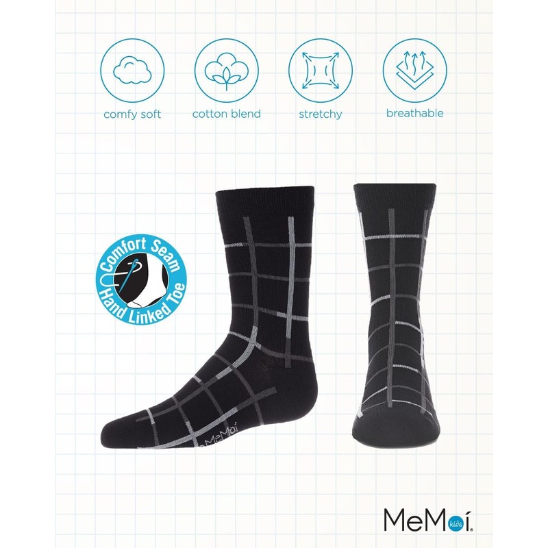 MeMoi Boys' Window Pane Crew Socks Black 7-8