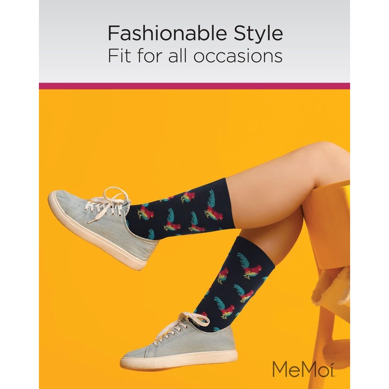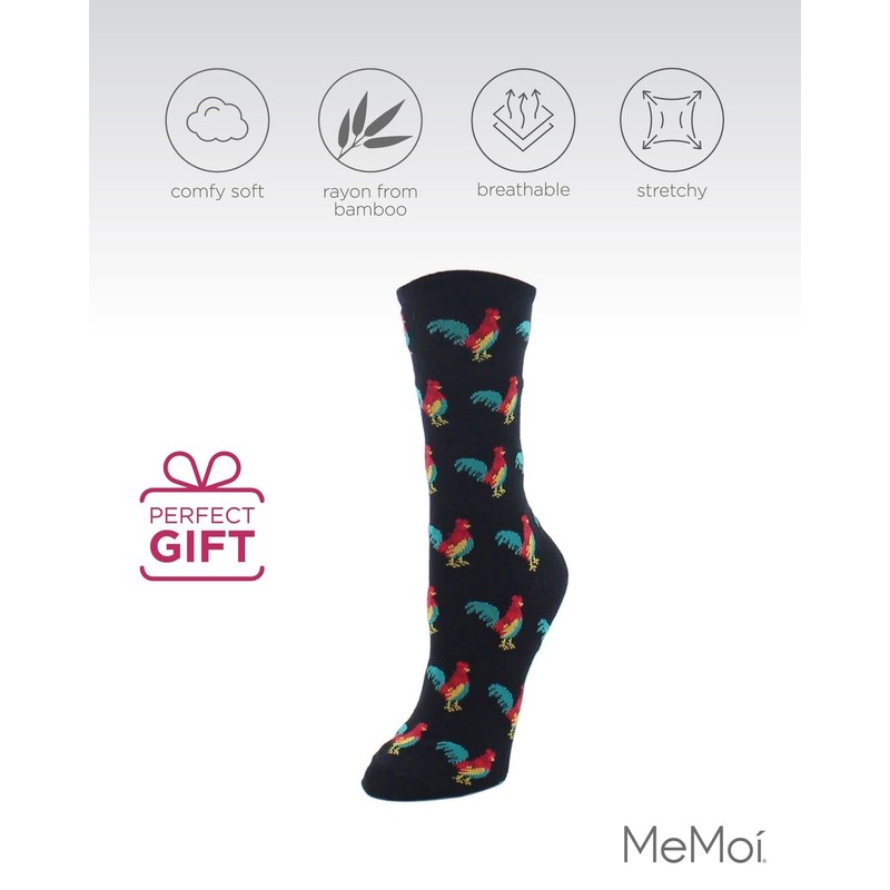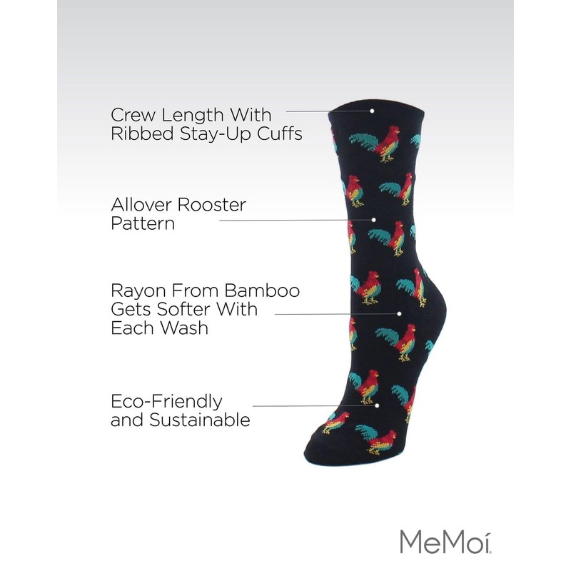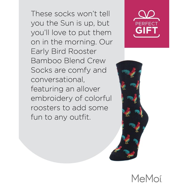 MeMoi Early Bird Rooster Rayon Blend Crew Novelty Socks Black 9-11