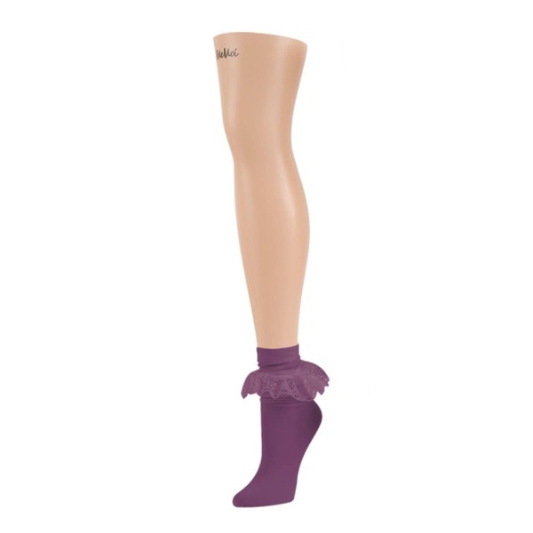 MeMoi Ruffleina Lace Ruffle Ankle Socks Grape Compote One Size