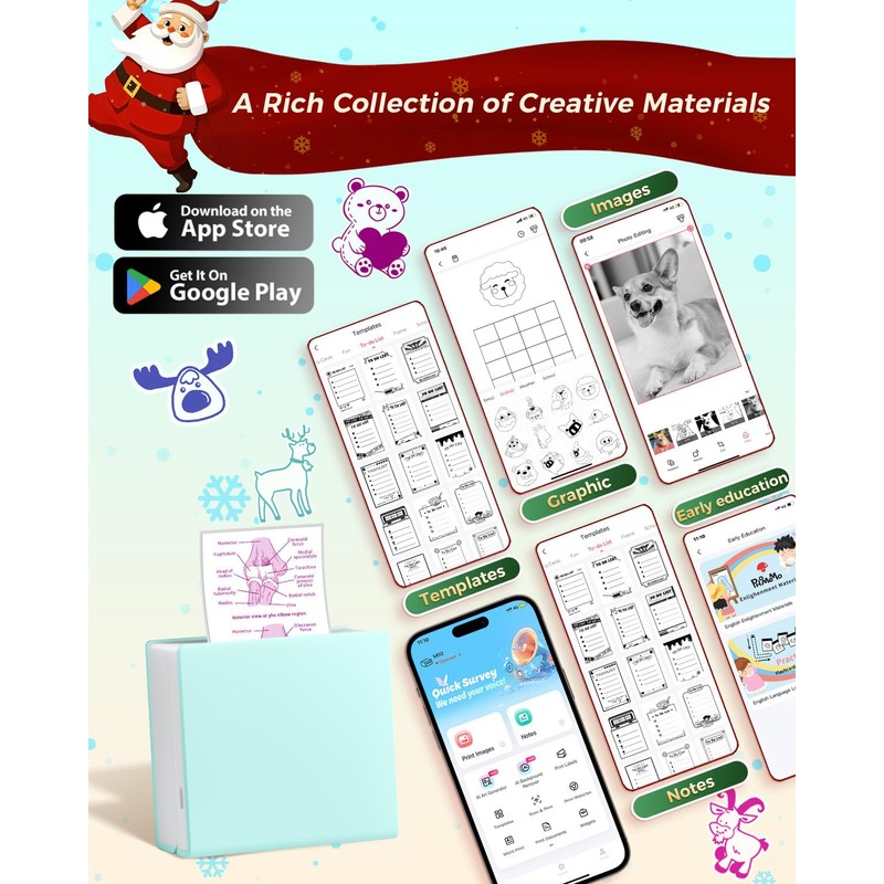 - Enjoy More Funny Life : M02 pocket printer is used to print pictures, photos, study notes, memo, shopping lists, scrapbooks, receipts, Journals, flashcards, diy sticker, delivery address, work plan, bookmark, greeting card and etc. You can use it for office, home, DIY, learning and more. Undoubtedly, it must be a special gift for friends, family, children, students, teachers and DIY craftsman on Christmas, Children's Day, Thanksgiving day and birthday day