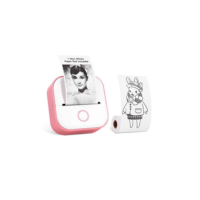 Memoking T02 Pocket Thermal Printer-Compact Bluetooth Wireless Portable Mobile Printer, 50-53mm Black and White Printing for Gift Study Notes Work Children, Compatible with iOS & Android, Pink