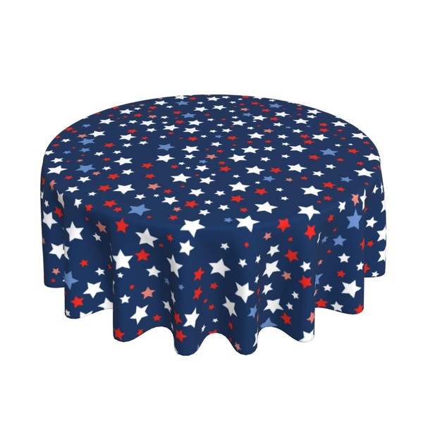 Memorial Day Patriotic Round Tablecloth 60 Inch Independence Day Liberty Star Waterproof Heat Resistant Reusable Table Cloth July 4th Decorations Table Cover for Holiday Kitchen Dinning Party Decor