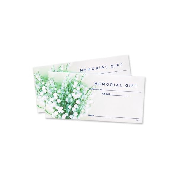 - Includes name and amount lines on front along with "In Memory Of" line