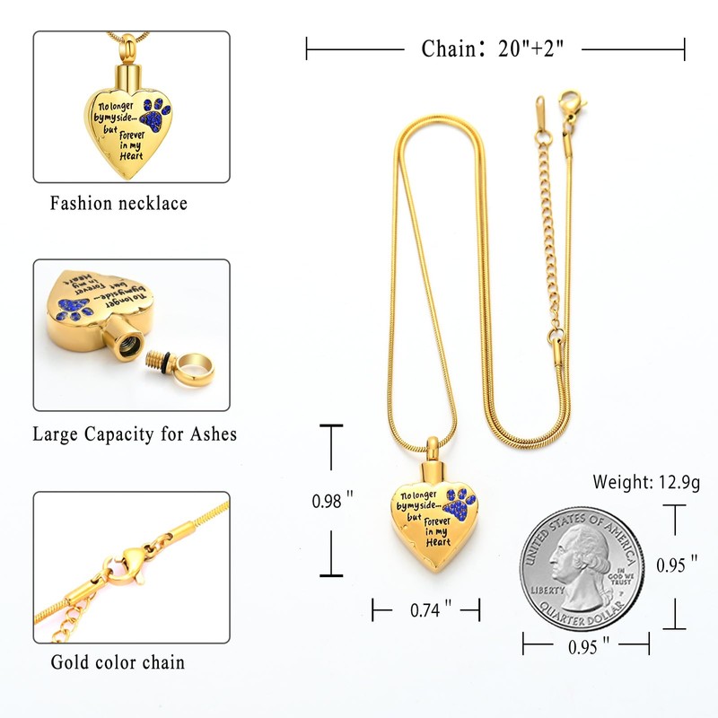 - ⛱️ 【Size】0.79inch*1.11inch heart pendant for ashes holder,pet paw print creamation jewelry.【QUAILITY】Meticulously designed and quality made,stainless steel.