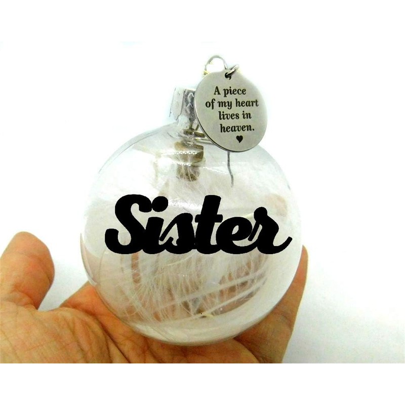 Memorial Keepsake Urn Ornament - Urn for Human & Pet Ashes Fur Hair Mane - Angel Wing Feather - A Piece of My Heart is in Heaven - Fillable Mother's Father's Day Gift (Sister)