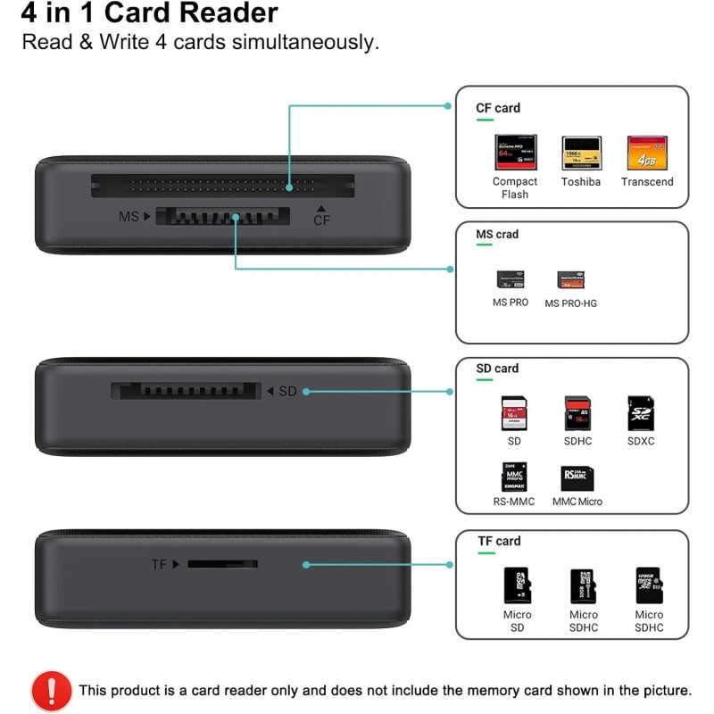 - SUPERIOR STABILITY - Built-in advanced IC chip handle the USB-C and USB-A high speed data transfer signal, allow HD movies trasfer in just seconds. It is a simultaneously card reader and can read and write 4 card at the same moment.