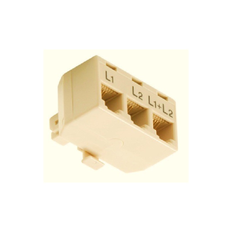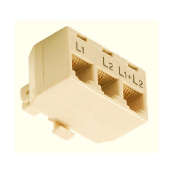 Memotronics RJ11 Phone Line Splitter/Separator/Adaptor for 2 Lines (1 Plug, 3 Sockets) Ivory