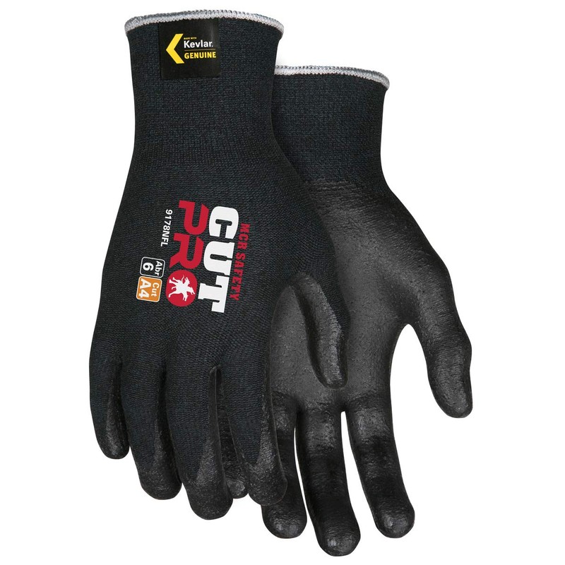 Memphis Large 13 Gauge Cut Resistant Black Foam Nitrile Palm And Fingertip Coated Work Gloves With Kevlar Liner And Knit Wrist
