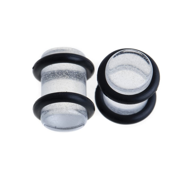 Gauges UV plugs with double o-rings: 14G (1.6mm), 12G (2mm), 10G (2.4mm), 8G