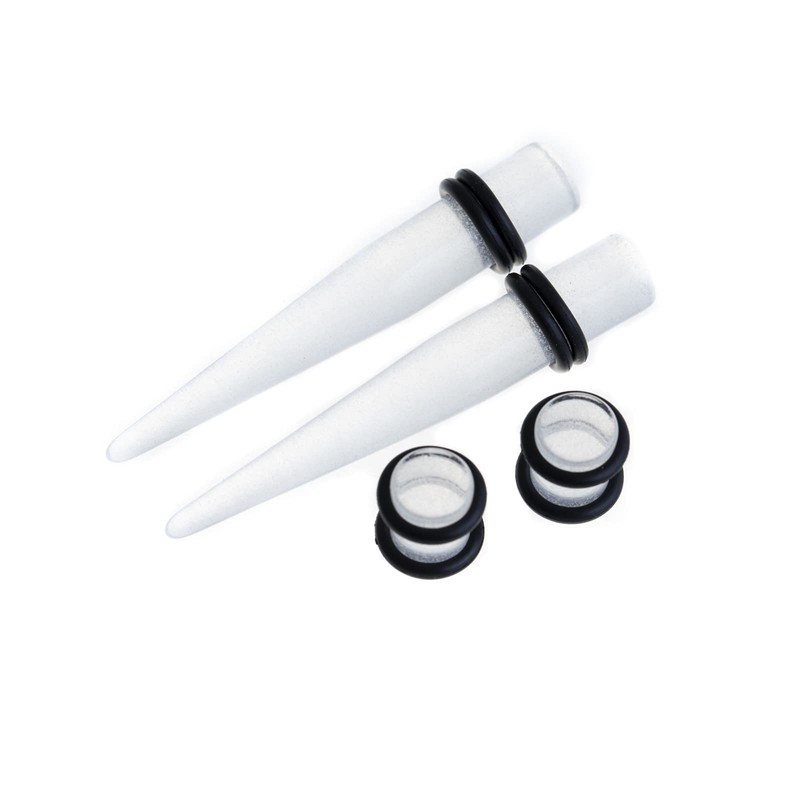 Gauge Size: Acrylic tapers for ears with double o-rings: 14G (1.6mm), 12G (2mm), 10G