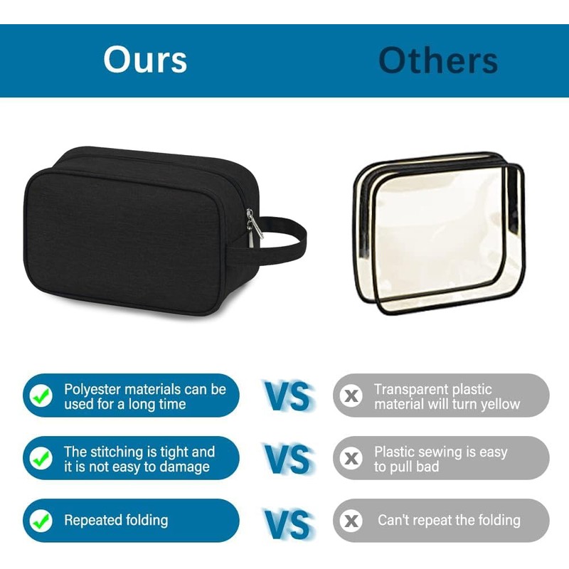 - đăLarge Capacityă- The bag has a generous size of 9.8"x4.3"x6.3" (25x11x16cm), which allows it to accommodate a variety of large skincare and personal care items, such as toothpaste, toothbrushes, hairbrushes, shaving kits, conditioner, lotion, and more. Additionally, it has three small pockets to keep travel-size toiletries organized and upright.