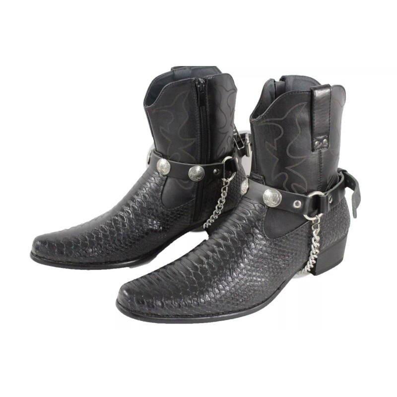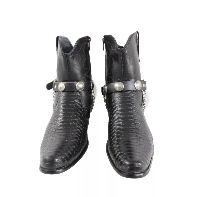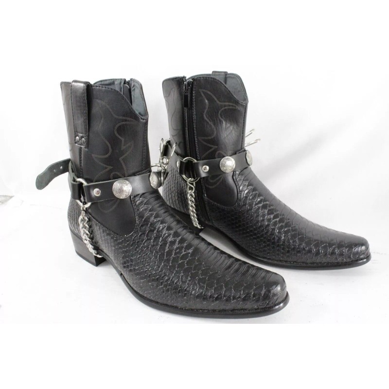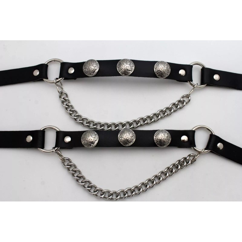 Men Biker Silver Metal Chain Pair Black Boot Straps Native American Charm Indian